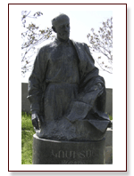 է նրա փառապանծ հուշարձանը. ձեռքին մի տետր, նա «կերտում» է իր հերթական