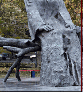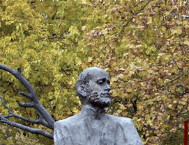 and buried there. His magnificent sculpture with an open notebook